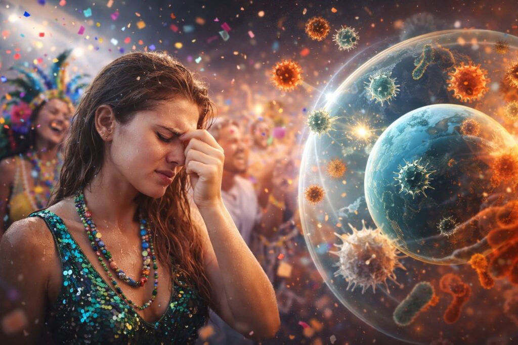 O Carnaval é o período de maior desgaste físico do ano para milhões de brasileiros. No entanto, por trás da euforia dos blocos e trios elétricos, esconde-se um cenário ideal para a propagação de doenças. Segundo o Dr. Bruno Bastos Chaves, especialista em Alergia e Imunologia Clínica com mais de 14 anos de experiência, o corpo passa por uma “tempestade perfeita” que abre as portas para vírus e bactérias.