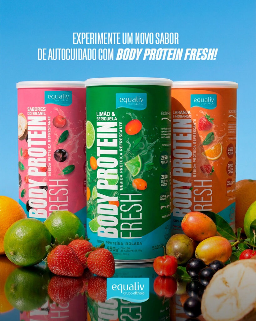 A Equaliv, marca do grupo farmacêutico Althaia, amplia sua linha Body Protein Fresh com dois novos sabores tropicais e refrescantes: laranja com morango, e limão com seriguela. Desenvolvida com BodyBalance®, tecnologia alemã de peptídeos de colágeno, a proteína contribui para ganho de massa muscular, redução de gordura, aumento de força e recuperação pós-treino.