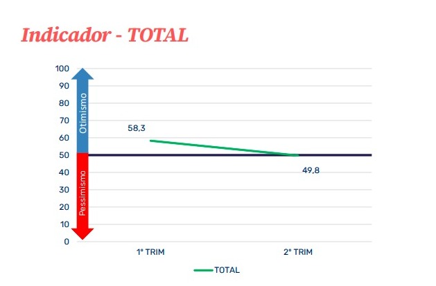 O resultado inicial mostra um recuo de 58,3 para 49,8 pontos entre o primeiro e o segundo trimestre, o que significa uma transição de otimismo (acima de 50 pontos) para um pequeno grau de pessimismo (abaixo de 50 pontos) – reflexo do impacto imediato do anúncio de tarifas norte-americanas sobre as exportações brasileiras. Apesar da queda, as expectativas para os próximos seis meses (51,6 pontos) permaneceram em território otimista, sinalizando confiança na capacidade de recuperação das empresas.