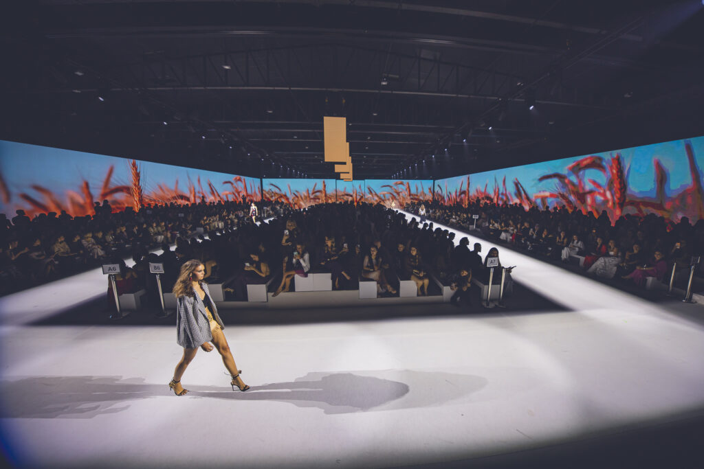 O resultado foi um cenário digital dinâmico que transformou visualmente o ambiente em quatro diferentes atmosferas ao longo da programação dos desfiles de lançamento, respeitando o estilo e identidade visual de cada marca. Projeções personalizadas que conversavam com os temas de cada grife deram ao público a sensação de estar em ambientes distintos entre um desfile e outro, sem precisar sair do lugar.