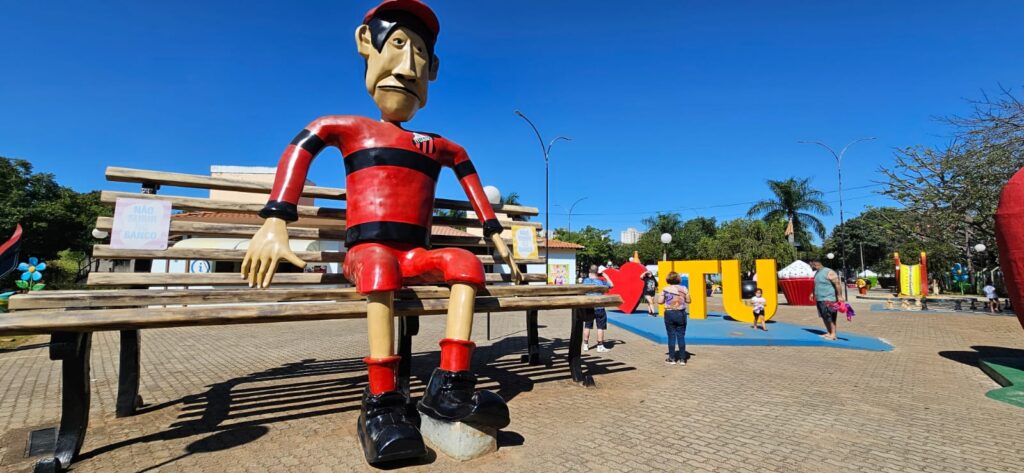 Famosa pelos objetos gigantes, a Praça dos Exageros é perfeita para uma pausa descontraída e muitas fotos criativas com os pequenos.